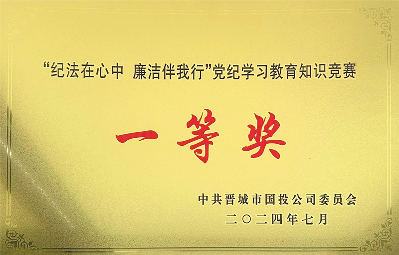 我公司取得“紀(jì)法在心中,廉潔伴我行”黨紀(jì)學(xué)習(xí)教育知識競賽第一名