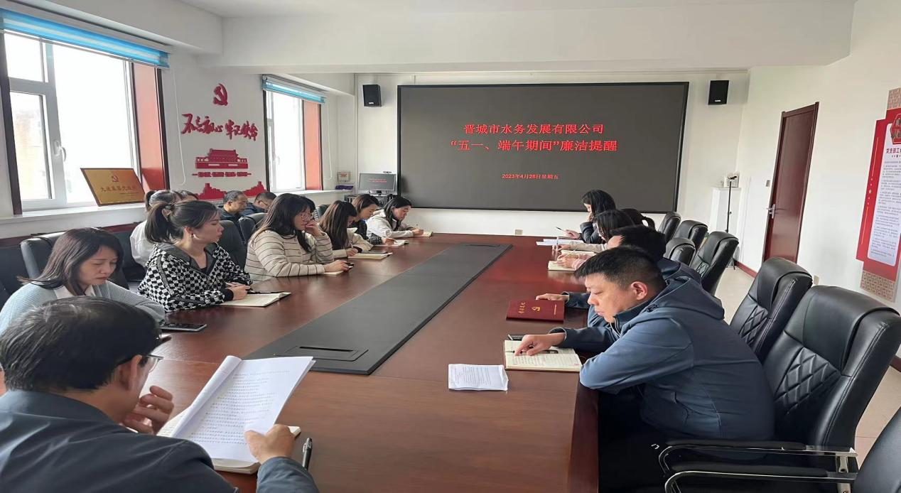 2023年五一、端午將至,為落實中央紀(jì)委國家監(jiān)委和省紀(jì)委監(jiān)委有關(guān)要求,切實做好五一、端午節(jié)日期間落實中央八項規(guī)定精神、糾“四風(fēng)”樹新風(fēng)工作,4月28日,晉城市水務(wù)發(fā)展有限公司組織全體干部職工召開“五一、端午期間”廉潔提醒談話,會議由公司黨支部書記、董事長潘軍主持。
