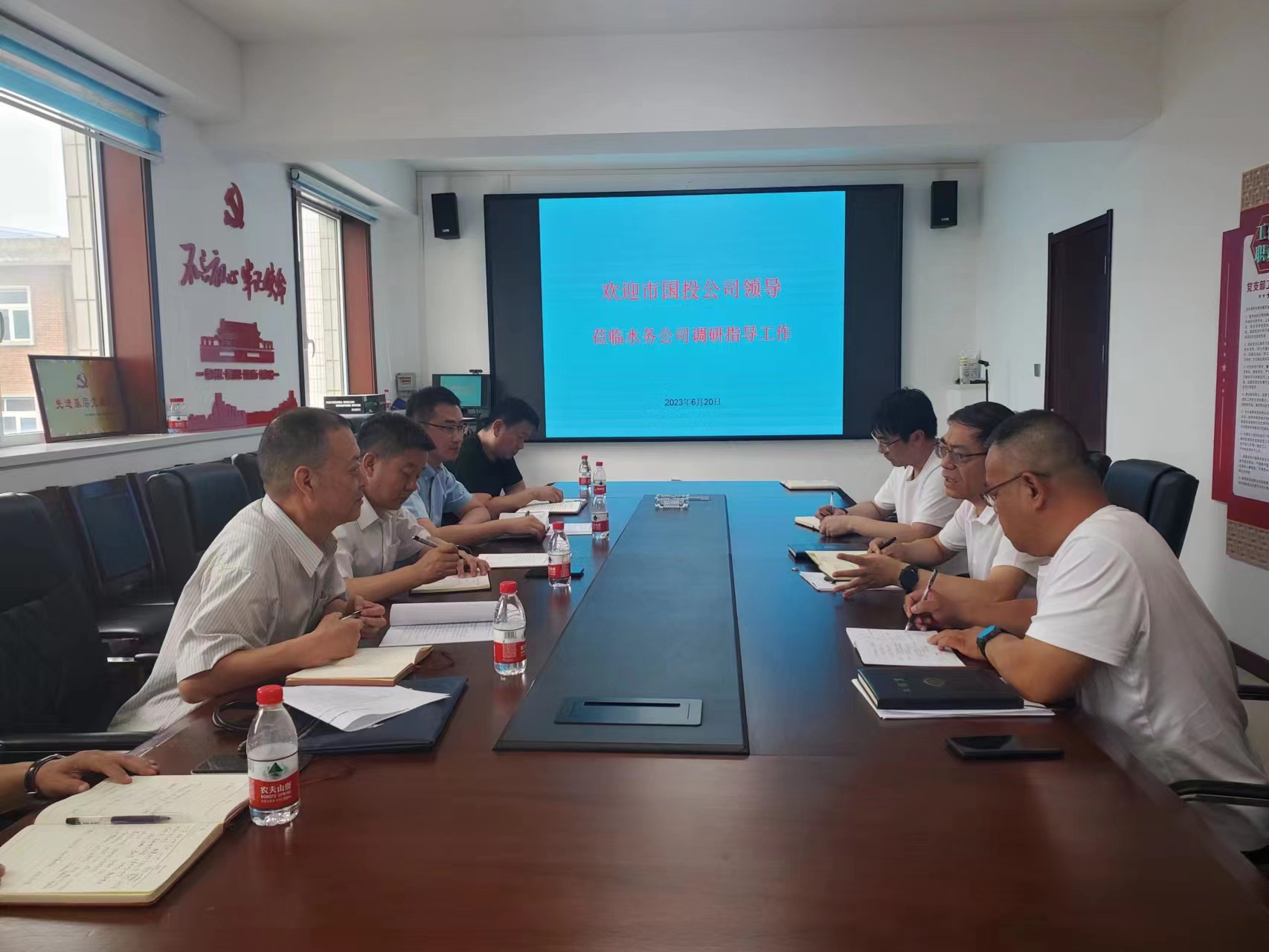 李曉明在詳細(xì)了解公司情況后對(duì)我公司的經(jīng)營管理工作成效給予充分肯定,并對(duì)企業(yè)下一步發(fā)展提出明確要求:一是全面發(fā)揮黨建引領(lǐng)作用。要以打造“紅旗國企”黨建品牌為先手,強(qiáng)化高質(zhì)量黨建智慧和力量,引領(lǐng)企業(yè)高質(zhì)量發(fā)展。二是持續(xù)加強(qiáng)“精細(xì)化”管控運(yùn)營,重點(diǎn)在構(gòu)建“精益”發(fā)展新模式上下功夫,強(qiáng)化供水管理,成本管控,提升企業(yè)生產(chǎn)安全精益管理水平。三是要有前瞻性戰(zhàn)略性專業(yè)化思維,要按照我市“六大發(fā)展戰(zhàn)略”,“1+5”產(chǎn)業(yè)體系要求,進(jìn)一步優(yōu)化布局,加快轉(zhuǎn)型升級(jí),提升發(fā)展水平。四要重點(diǎn)強(qiáng)化人才梯隊(duì)建設(shè),加強(qiáng)員工專業(yè)技術(shù)培訓(xùn),為推動(dòng)企業(yè)高質(zhì)量發(fā)展提供有力支撐。五要積極配合推進(jìn)水務(wù)板塊重組相關(guān)工作,做大做強(qiáng)做優(yōu)水務(wù)產(chǎn)業(yè)。六要抓牢安全生產(chǎn),提高企業(yè)風(fēng)險(xiǎn)防范能力。要以“安全生產(chǎn)月”系列活動(dòng)為契機(jī),強(qiáng)化企業(yè)主體責(zé)任意識(shí),推動(dòng)隱患排查治理工作落實(shí)落細(xì)。